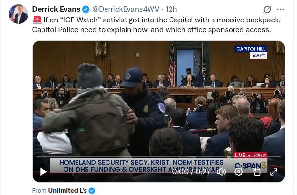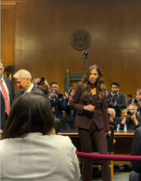 After checking this week’s Congressional calendar, I decided to embark on a mission to The Hill today. The Senate Judiciary Committee would be interrogating Kristi Noem on her administration of DHS.
