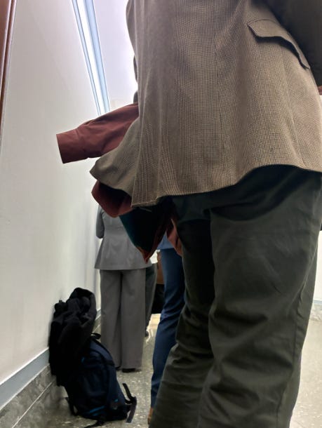 I woke up at 5:00 am. Even though the hearing I wanted to attend was scheduled for 9:00 am, I have learned that I have to be there at least two hours before to get in line if I want to get into the hearing room.